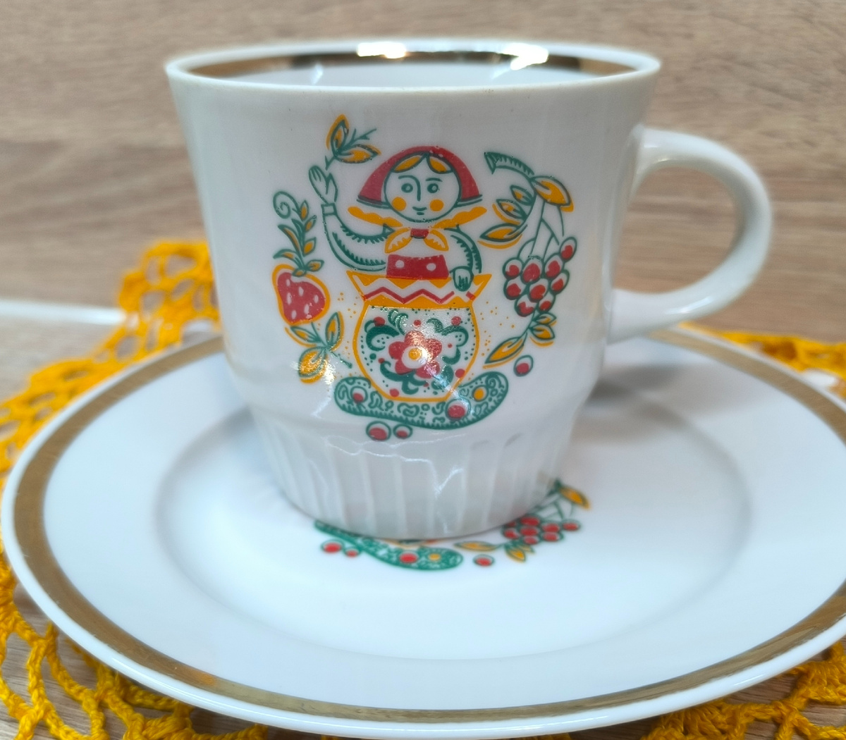 Рада снова вас приветствовать на моем канале. Хочу сегодня поделиться с Вами своим новым приобретением, к посуде с детской тематикой пополнение. Вот и мечты сбываются. Ранее были приобретены пирожковый тарелочки с рисунком из сказок производство Южноуральского Фарфорового завода, с "берёзовым листиком" примерно с 1974-1984-е годы. Персонаж из сказок "Алёнушка собирает ягодки в лесу", рисунки с сказочными персонажами, всегда очень трогательны и красивы. А вот теперь с такими же персонажами из сказок с "Алёнушкой" появились кружки, а с другой стороны кружки просто лесные ягодки. Кружки, большие наверное это все же бокалы. При всей похожести с тарелками они оказались другого фарфорового завода "Песочное" (1976-1991годы) и возможно моложе. Деколь широко использовалась почти у большей половины советских фарфоровых заводов. Смотря на них возникает, такая ностальгия!!!! Просто было очень приятно в детстве держать подобную кружку в руках, рассматривать рисунки на ее стенках и понимать,