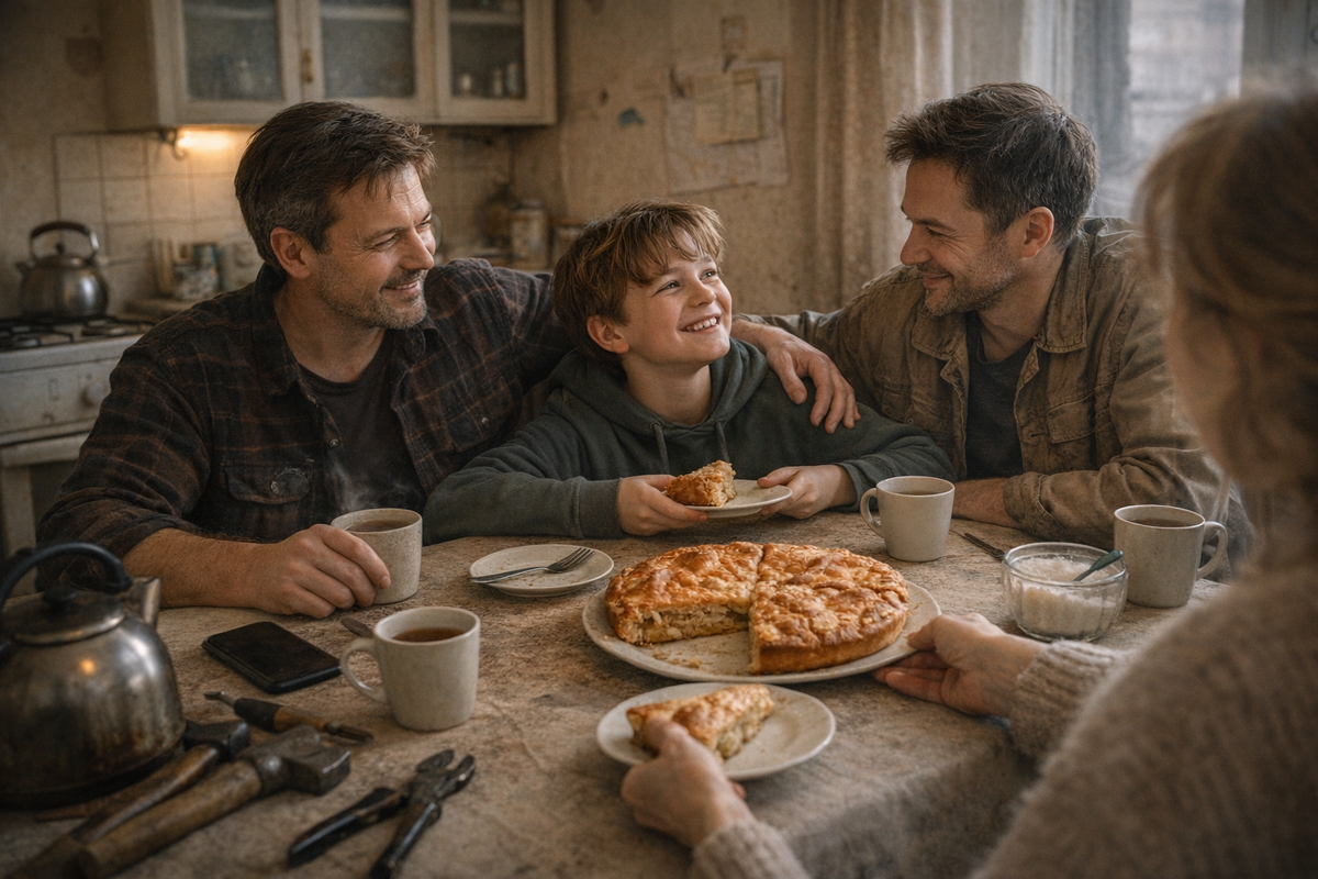 И в этот момент я увидела очень простую вещь. Не чудо. Не великое примирение. Просто троих мужчин разного возраста в одной кухне. Старую квартиру, которая перестала быть склепом для обиды. И ребёнка, который больше не носит в рюкзаке ключ как вещественное доказательство чужой войны.