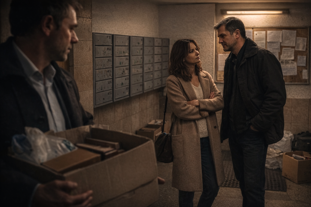 В день, когда он забирал часть вещей, в подъезде снова встретился Олег. Всё было до смешного похоже на плохую драму: коробки, зима, чужие пакеты, люди в дверях. Только на этот раз я не хотела ни пафоса, ни мести.