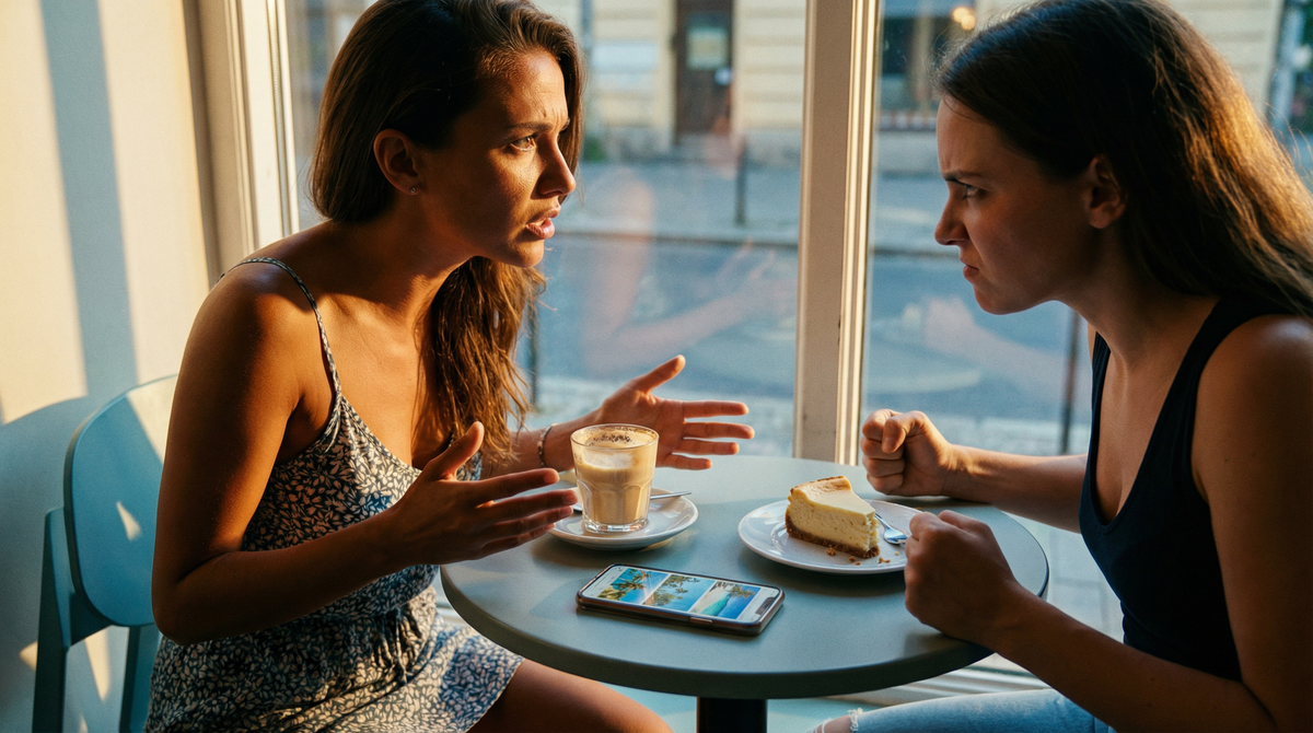 Я обняла коротко. Она села, заказала латте и чизкейк. Начала рассказывать, как в Турции было жарко, как Серёжа обгорел, как катались на банане, как нашли ресторан с живой музыкой.