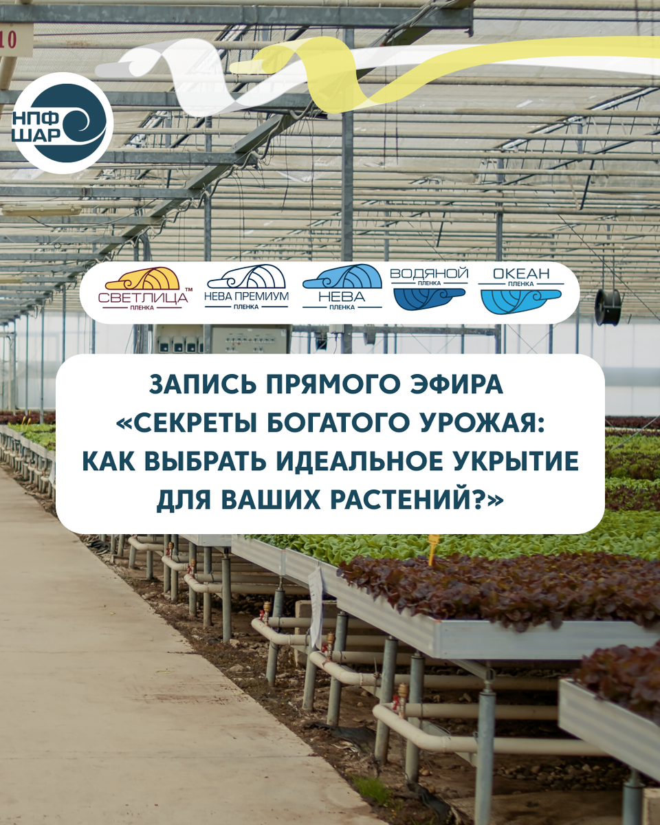 Сегодня мы провели прямой эфир с руководителем отдела маркетинга НПФ «Шар» Евгением Алексеевым, где подробно разобрали тему: «Секреты богатого урожая: как выбрать идеальное укрытие для ваших растений?» В эфире поговорили о видах укрывных материалов, особенностях их применения, правилах крепления плёнки и обработке теплиц, а также ответили на вопросы зрителей. Если вы не успели присоединиться к трансляции — запись эфира уже доступна по ссылке ниже. 📌 Посмотреть запись эфира: https://vkvideo.ru/video-79440244_456242021?sh=4