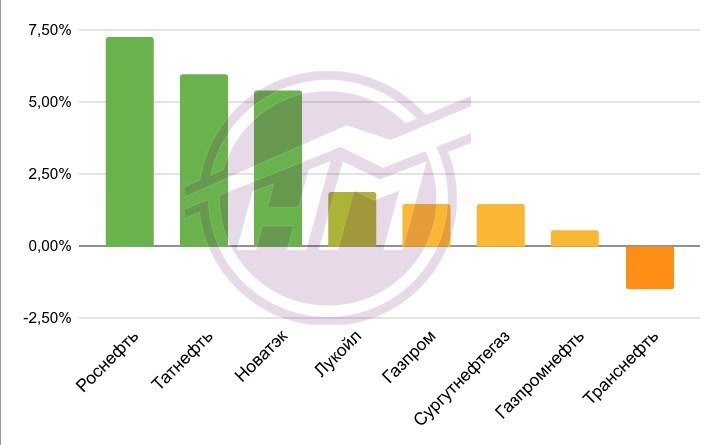 : ⛽️ Роснефть 🔼 7,27% от 435,80 до 467,50 рублей ⛽️ Татнефть 🔼 5,95% от 606,80 до 642,90 рублей 🔋 Новатэк 🔼 5,39% от 1276,20 до 1345,00 рублей ⛽️ Лукойл 🔼 1,87% от 5532,50 до 5636,00 рублей ⛽️ Газпром 🔼 1,47% от 130,26 до 132,17 рублей ⛽️ Сургутнефтегаз 🔼 1,46% от 22,91 до 23,24 рублей ⛽️ Газпромнефть 🔼 0,56% от 535,00 до 538,00 рублей ⛽️ Транснефть 🔽 -1,48% от 1429,80 до 1408,60 рублей Эталонный сорт Brent на мировом рынке оценивался в понедельник 2 марта на уровне 77,74$/bbl, в пятницу 6 марта марта 92,69/bbl Курс рубля к доллару находился в диапазоне от 77,27 до 78,19 За неделю индекс РТС упал на -1,11%, а индекс МосБиржи вырос на 1,08% 🇮🇷 В Иране заявили о закрытии Ормузского пролива Иран планировал взимать так называемую «плату за безопасность» с нефтяных танкеров и коммерческих судов, принадлежащих странам, которые поддерживают США. Кроме того, Иран заявлял, что будет продолжать противостояние до тех пор, пока президент США Дональ