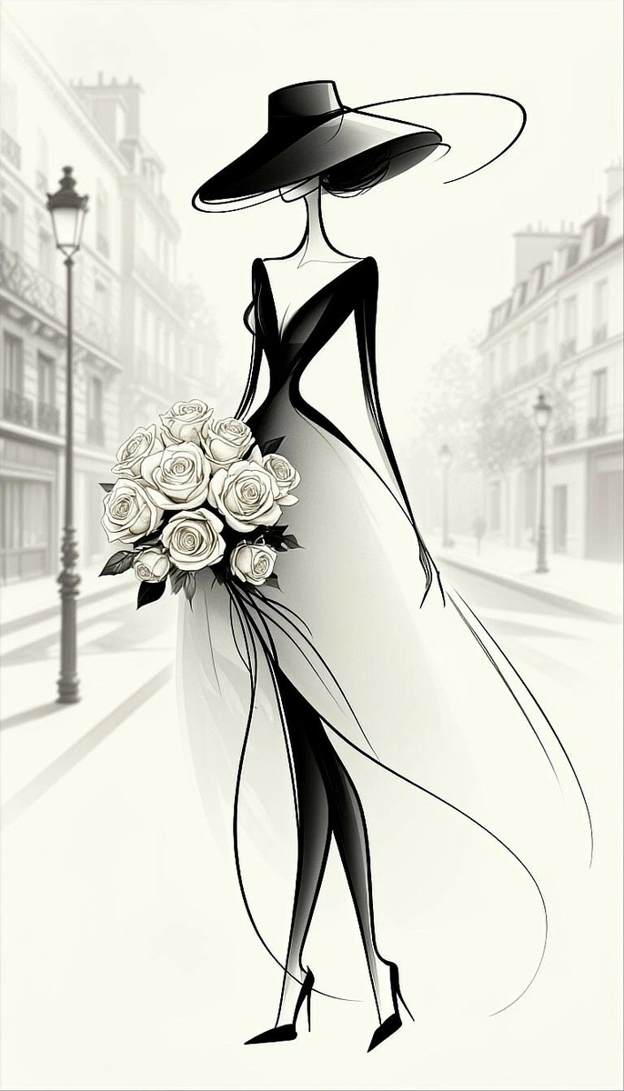 Мы выходим гулять, когда город уже устал и прикрыл глаза. Только фонари, только длинные тени и я: тонкая чёрная линия на фоне ночных витрин. Сегодня я надела те самые туфельки. Вы знаете, о чём я. Те, что с тонкими ремешками, обнимающими щиколотку, и изящным каблуком, который цокает по брусчатке так ритмично, будто отбивает какой-то только мне известный такт. В них есть что-то невероятно женственное, почти хрупкое. Как стебель тюльпана, который гнётся, но не ломается. А ещё- шляпка. Моя любимая, с широкими полями, которые бросают таинственную тень на глаза и делают меня похожей на героиню старых чёрно-белых фильмов. Ту самую, что уходит в ночь с загадочной улыбкой, оставляя мужские сердца разбитыми. В ней есть что-то кокетливое и одновременно защищающее, будто я могу смотреть на мир сквозь эту вуаль теней, оставаясь не до конца разгаданной. В руках- небольшой букет. Сегодня я собрала его специально для этой прогулки. Нежные ранункулюсы, веточка эвкалипта, пара пышных роз молочного отте