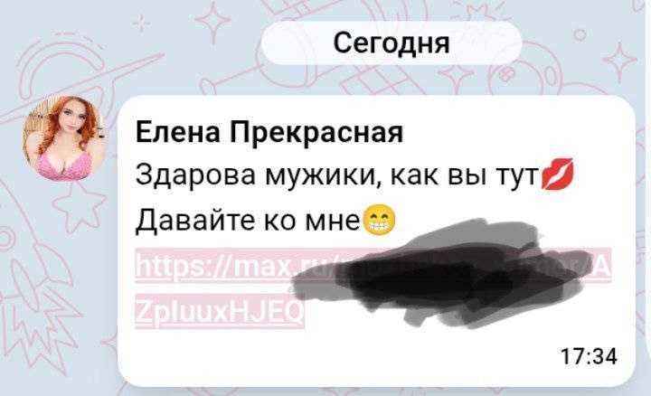 Даже проститутки в комментариях появились Подписывайтесь: https://max.ru/AleksandrSemchenko Конкретно эту я забанил. Но, по опыту ТГ, набегут новые. Думал, хоть в махе их не будет. Но, как видите...