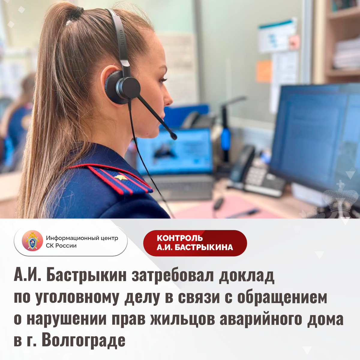 А.И. Бастрыкин затребовал доклад по уголовному делу в связи с обращением о нарушении прав жильцов аварийного дома в г. Волгограде На единую многоканальную телефонную линию Информационного центра СК России поступило обращение по вопросу длительного нерасселения жильцов многоквартирного дома на улице 2-й Караванной города Волгограда. Здание 1959 года постройки находится в непригодном состоянии: напольные перекрытия разрушаются, в стенах образовались трещины, подвал затоплен канализационными стоками. В 2017 году строение признано аварийным, однако до настоящего времени благоустроенное жилье гражданам не предоставлено, установленный на 2024 год срок расселения перенесен на неопределенное время. Обращения в различные инстанции результатов не принесли. В СУ СК России по Волгоградской области возбуждено уголовное дело. Председатель Следственного комитета Российской Федерации Александр Иванович Бастрыкин затребовал у руководителя СУ СК России по Волгоградской области Василия Ивановича Семенов