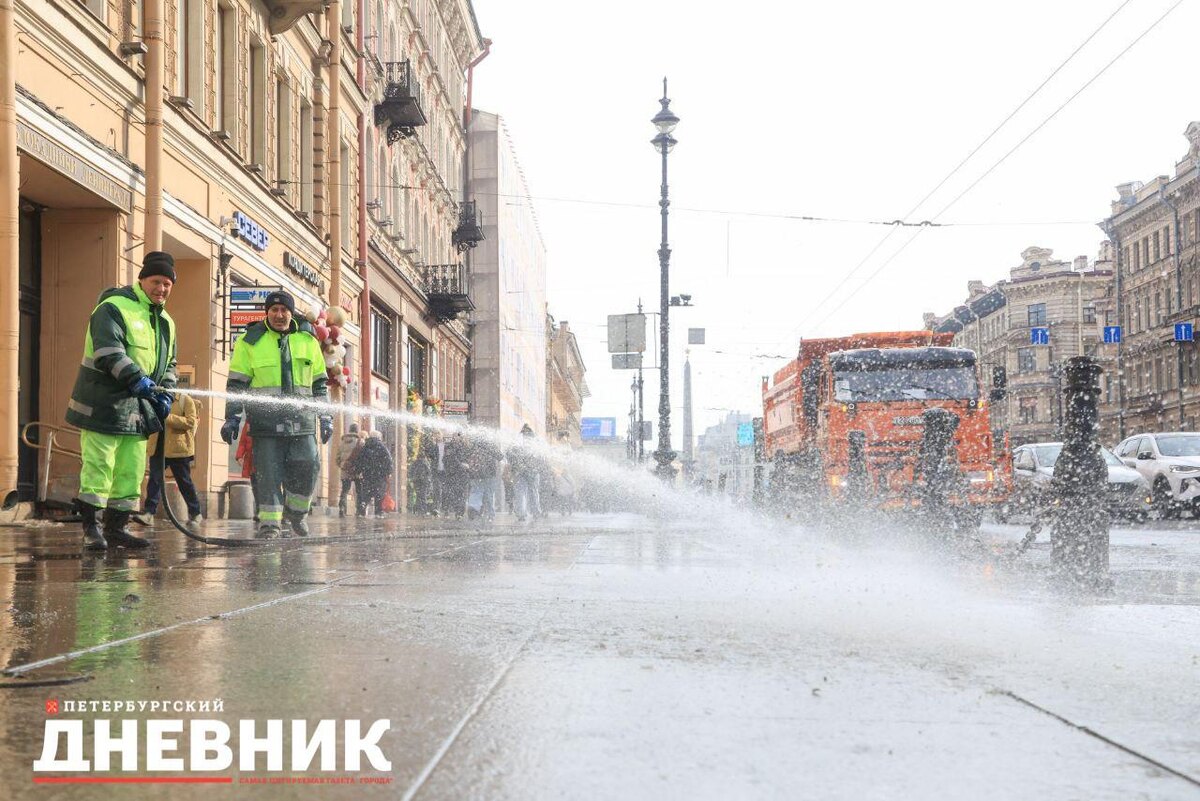 В Петербург пришло тепло, и город начали мыть по-настоящему. Дорожные службы воспользовались плюсовой температурой, чтобы устроить генеральную уборку Невского проспекта. В ход идет не просто вода, а специальный «шампунь», чтобы смыть зимнюю грязь и вернуть улицам сияние. Фотокорреспондент «Петербургского дневника» запечатлел, как город постепенно сбрасывает зимний налет и готовится встретить тепло во всей красе. Напомним, что совсем скоро стартует весенний месячник в Северной столице. Весенняя уборка будет проходить поэтапно.