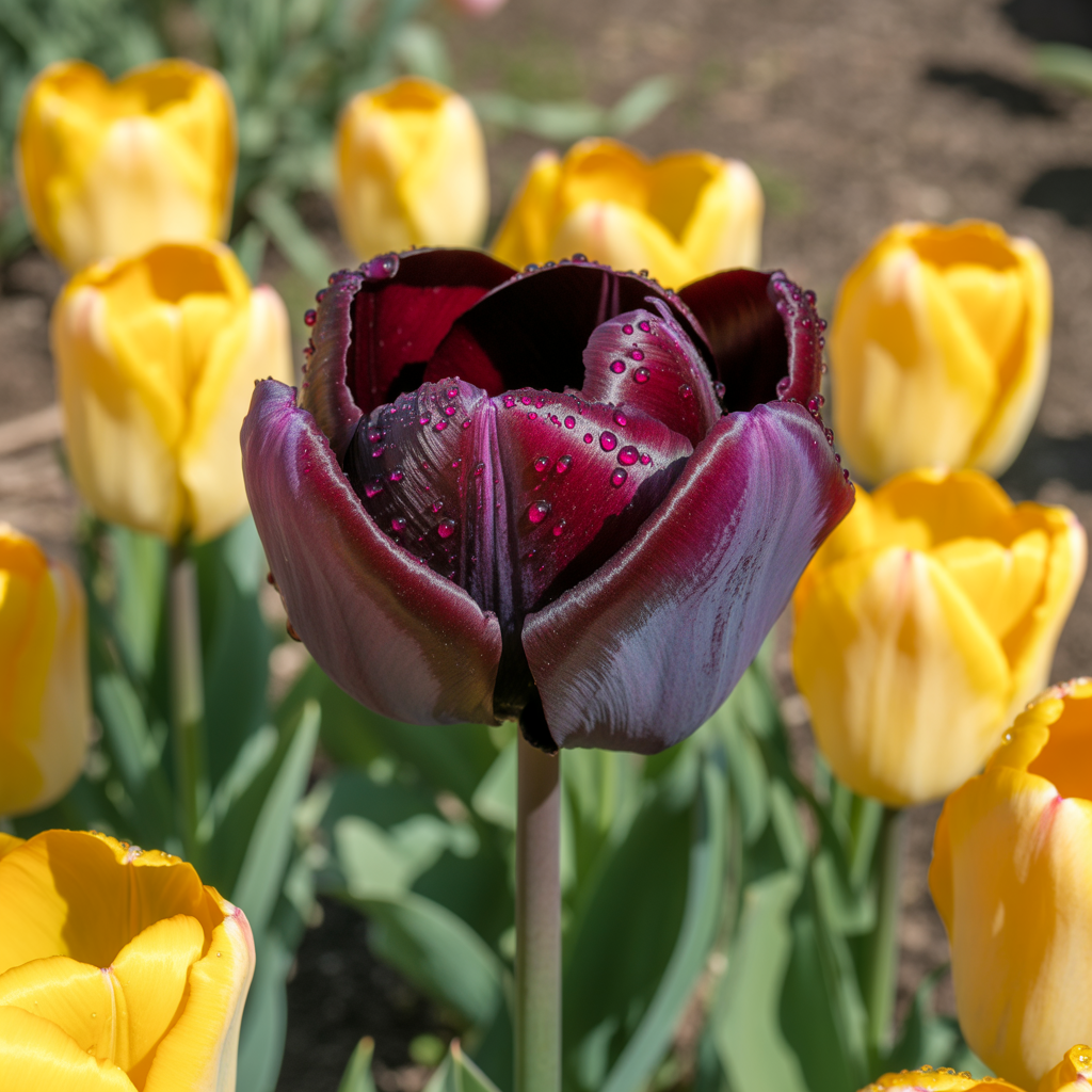 Всё, что нам впаривают как «черное» — это на самом деле очень-очень темно-фиолетовый или густо-бордовый. Если такой тюльпан поставить в глубокую тень, он реально кажется темным. Но на майском солнце? Это просто темная слива.
