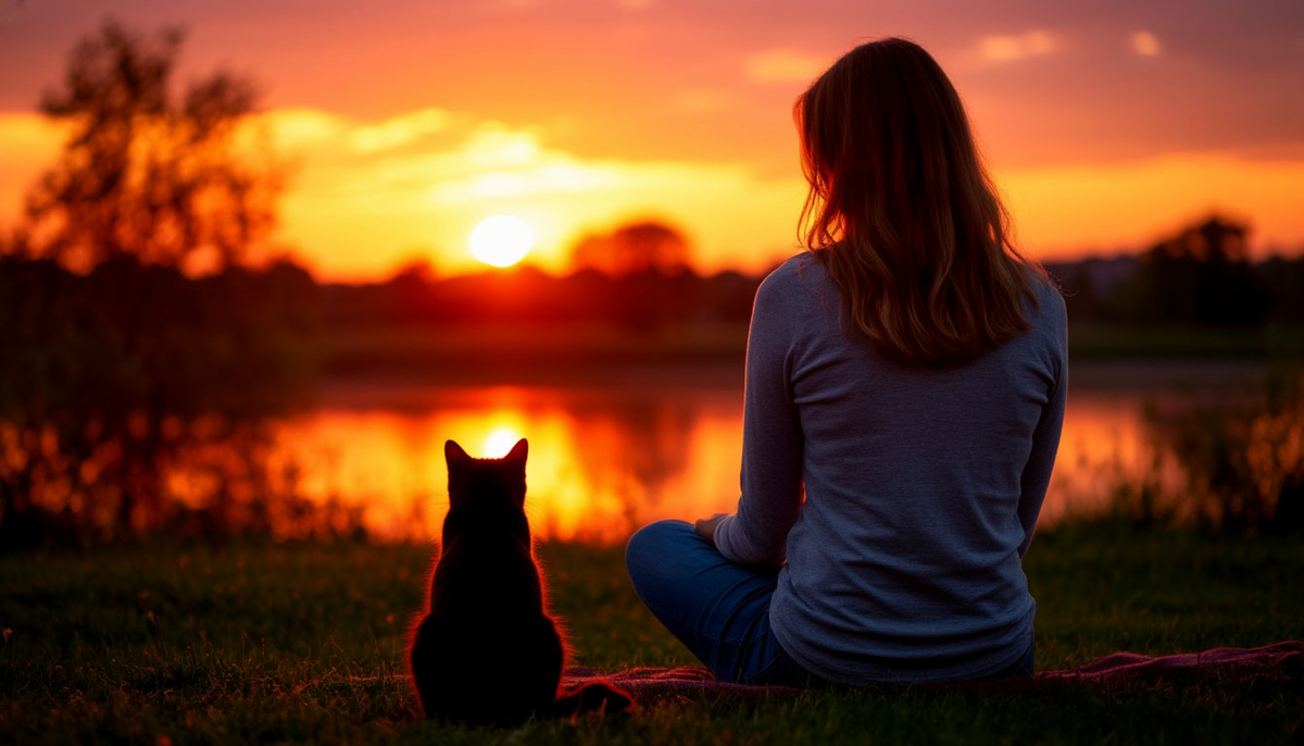 Серый прыгнул на колени, ткнулся носом в руку и замурлыкал. Я погладила его и посмотрела в окно. Там был закат, огромный, оранжевый, какой бывает только в деревне.
