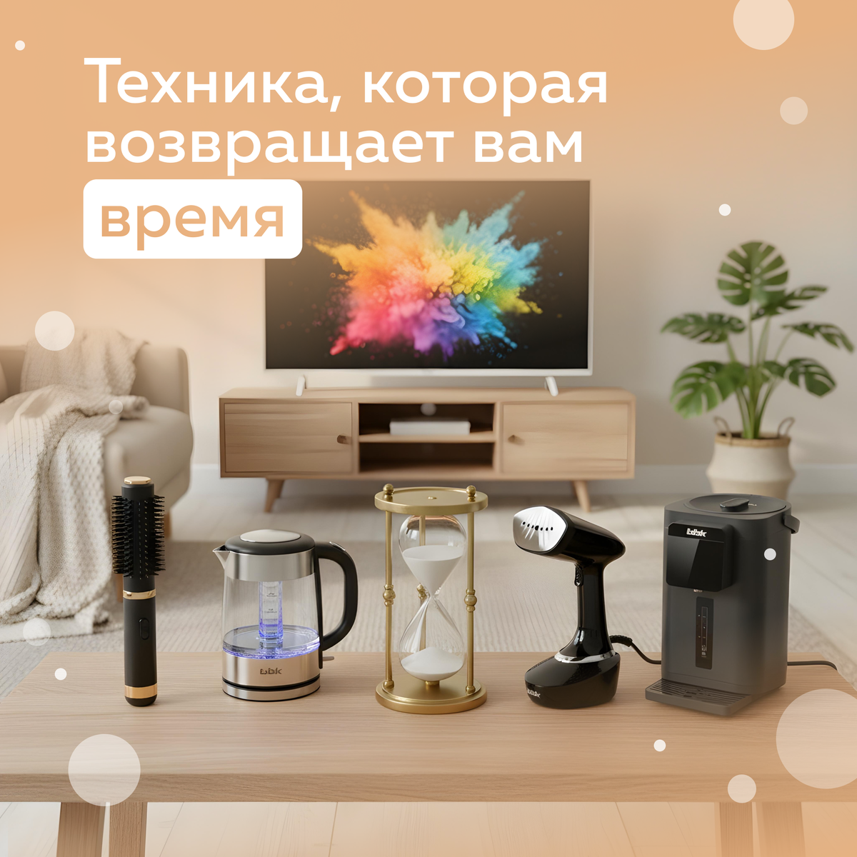 Мы сравнили, сколько минут тратится на обычные домашние дела с обычной техникой и техникой BBK. Вывод прост: современная техника берет рутину на себя. Остается только наслаждаться результатом. Что мы выяснили: - Чайник: 3 минуты вместо 10 на плите. Электрический чайник BBK справляется в 3 раза быстрее. - Горячая вода: термопот BBK поддерживает нужную температуру круглосуточно. Не нужно ждать нагрева каждый раз. - Укладка волос: 10 минут вместо 20-30 с обычным феном и щеткой. Термощетка BBK делает все за один проход! - Глажка: отпариватель BBK убирает складки без доски и перекладываний. Быстрее и удобнее обычного утюга. - Поиск фильма: умный ТВ BBK найдет контент за секунды вместо часов листания каталогов.