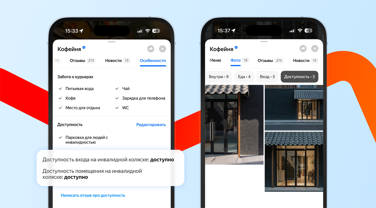 Яндекс Карты с помощью ИИ-технологий расширили базу точек питания, доступных для маломобильных людей. Две нейросети — визуально-языковая и большая языковая модели — анализируют фотографии входов в кафе и рестораны, проверяя наличие пандусов, поручней, ширину прохода и высоту порога. Благодаря этому количество объектов с отметкой «Доступный вход» выросло с 39 до 52 тысяч, а доля заведений с фото в блоке «Доступность» увеличилась почти в 4,5 раза. Теперь пользователи могут находить подходящие места с помощью фильтра или спрашивать о доступности в ИИ-чате. Нейросеть Alice AI VLM анализирует фотографии входа по нескольким параметрам: наличие пандуса, поручней, ступеней, ширина прохода, высота порога. Затем вторая модель, Alice AI LLM, принимает решение о доступности места. Если вход признаётся подходящим для инвалидного кресла, в карточке заведения появляется соответствующая отметка. Всего алгоритмы изучили уже более 900 тысяч снимков, загруженных пользователями. Найти подходящие точки мож