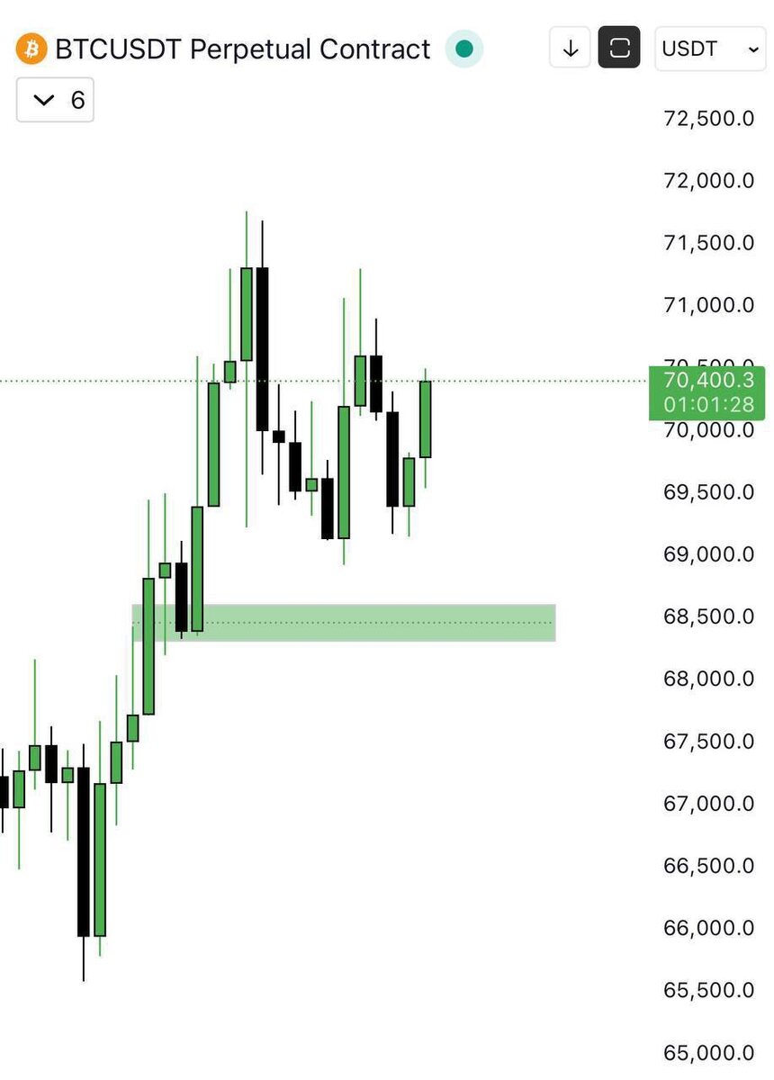 🟢 Торгуемся в районе $70к с локальными выносами в обе стороны. Без изменений. Прогноз: независимо от того, будет ли ещё один откат, цель одна — рост к $75–76к. Приоритетный сценарий — продолжение движения вверх из текущего диапазона $70–68к. #Bitcoin #BTC #Анализ #альтсезон BusineesEconomyBlockchain l Bybit