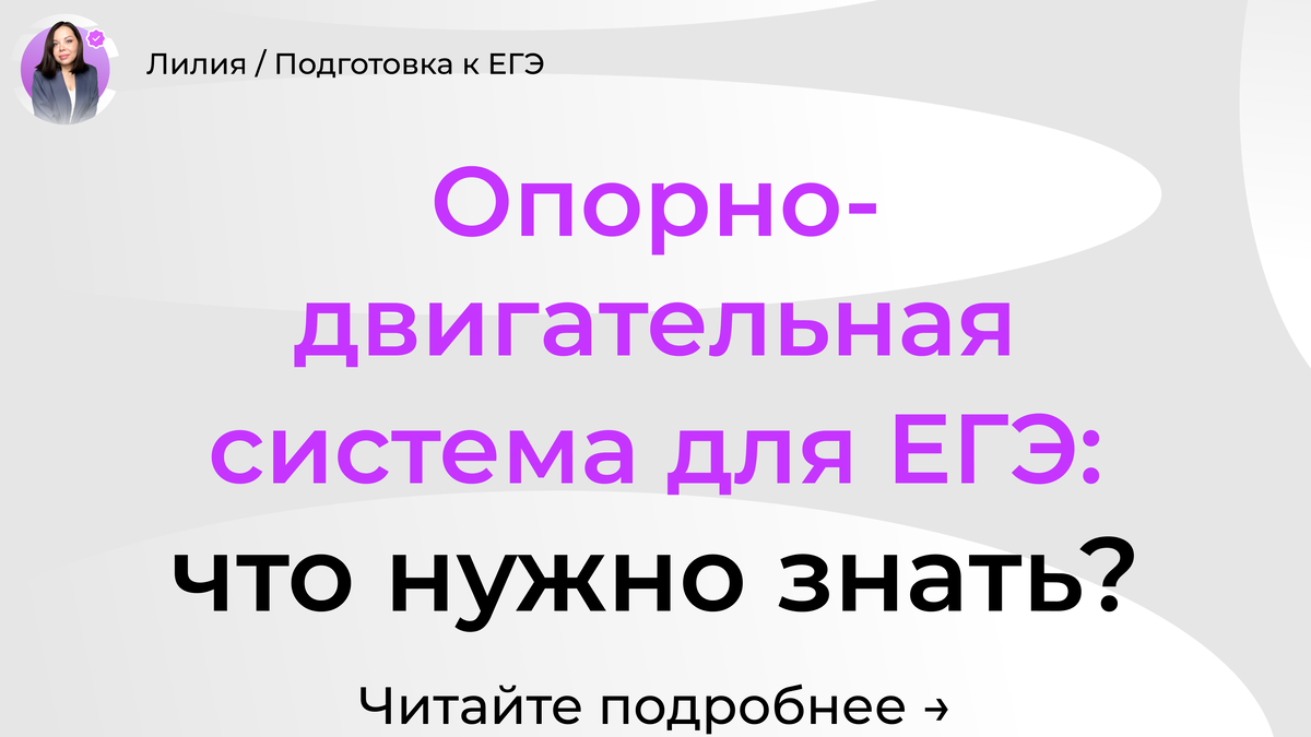 Опорно-двигательный аппарат — одна из ключевых тем в разделе «Анатомия человека». На ЕГЭ ей посвящены задания 13–16 (тестовая часть), а также вопросы 23–25 (работа с рисунками и текстом). В этой статье мы разберём всё, что нужно знать для успешной сдачи экзамена: строение скелета, типы костей, соединения и частые ошибки. Череп Позвоночник Грудная клетка Пояс верхних конечностей Свободная верхняя конечность Пояс нижних конечностей Свободная нижняя конечность В ЕГЭ могут попросить привести примеры или определить тип по рисунку. В задании 23 часто дают рисунок кости и просят подписать структуры. В ЕГЭ могут спросить, какой тип соединения характерен для костей черепа, или попросить назвать элементы сустава. Опорно-двигательная система — благодатная тема: если один раз разобраться, баллы на ЕГЭ обеспечены. Главное — систематизировать знания и тренироваться на реальных заданиях. В моём ТГ‑канале мы ежедневно разбираем такие темы, решаем задачи и учимся не терять баллы на оформлении. Подписы