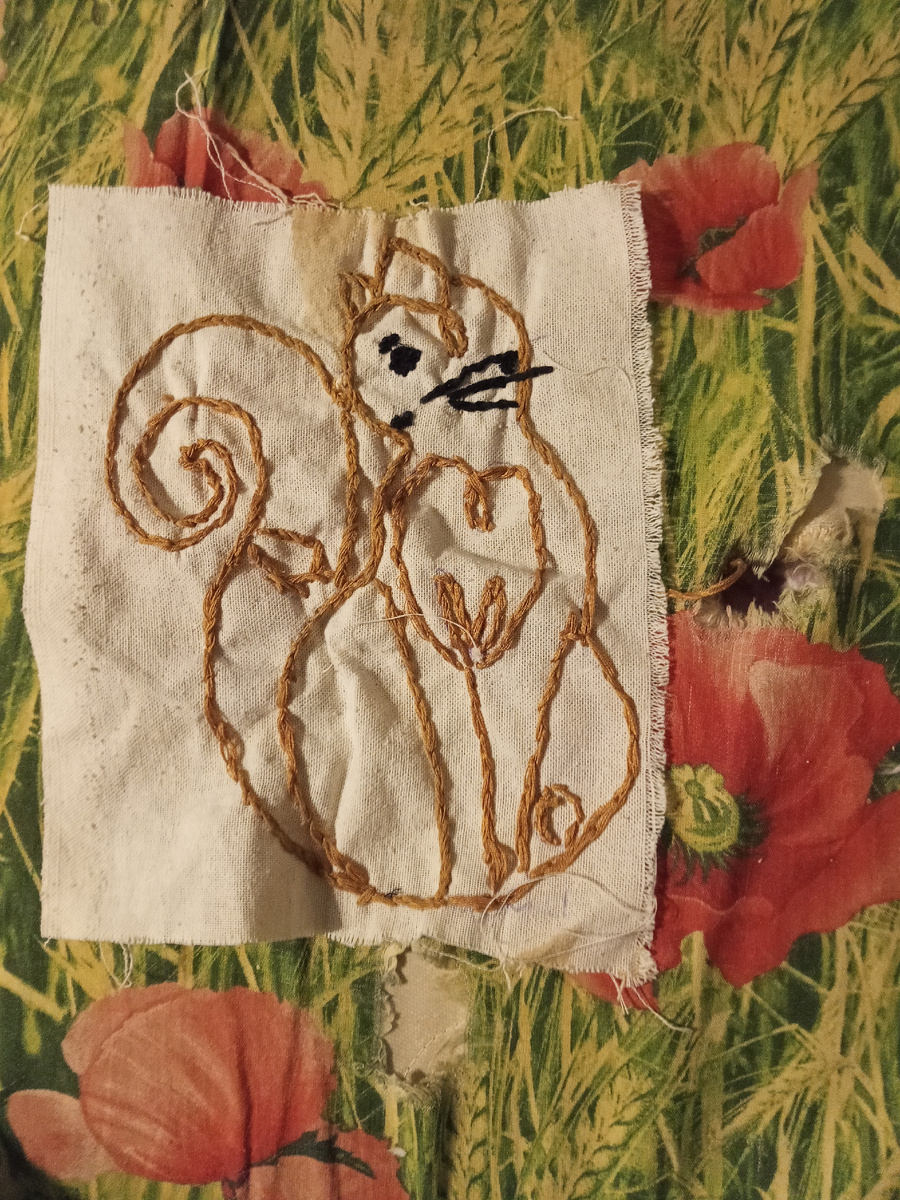 Дырку заделала мехом, который остался когда я шила нашивки на плед с от табо лапок.