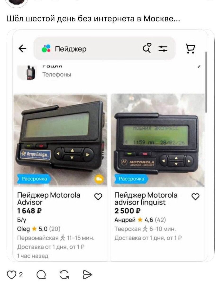 📱 Москвичи начали массово покупать пейджеры, бумажные карты и стационарные телефоны на фоне проблем с мобильным интернетом