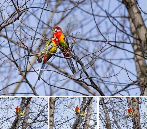 Они сидят на ветках, лакомятся семенами акации и совершенно не боятся города.