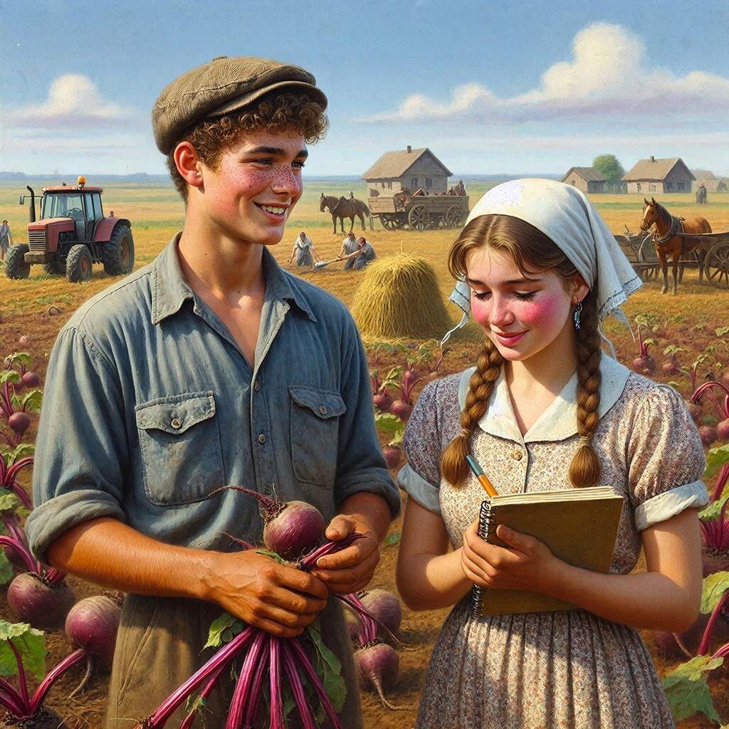 Они познакомились на уборке свеклы в колхозе «Красный путь». Ему было двадцать, ей — восемнадцать. Он приехал на практику из техникума, она местная, работала учётчицей.