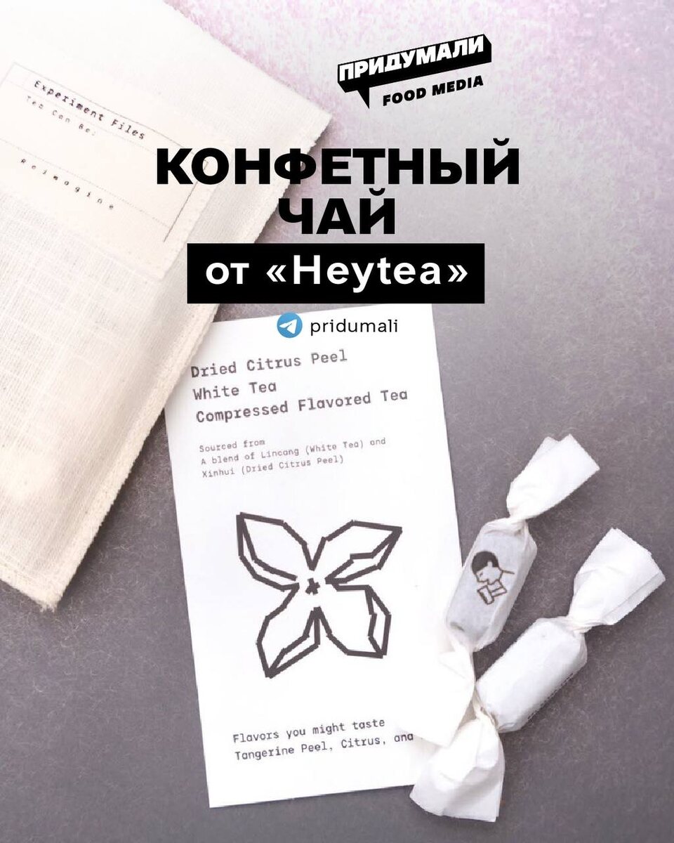 Порции чая спрессовали в небольшие брусочки и упаковали как конфеты. Все знают порционный чай в виде таблеток/шайбочек, завёрнутый в яркую фольгу или тонкую папиросную бумагу. А HEYTEA добавили чаю десертный стиль. Такая маленькая чайная награда в ностальгической упаковке. 🔗heytea_ca 👉подписаться на @pridumali #foodмаркетинг