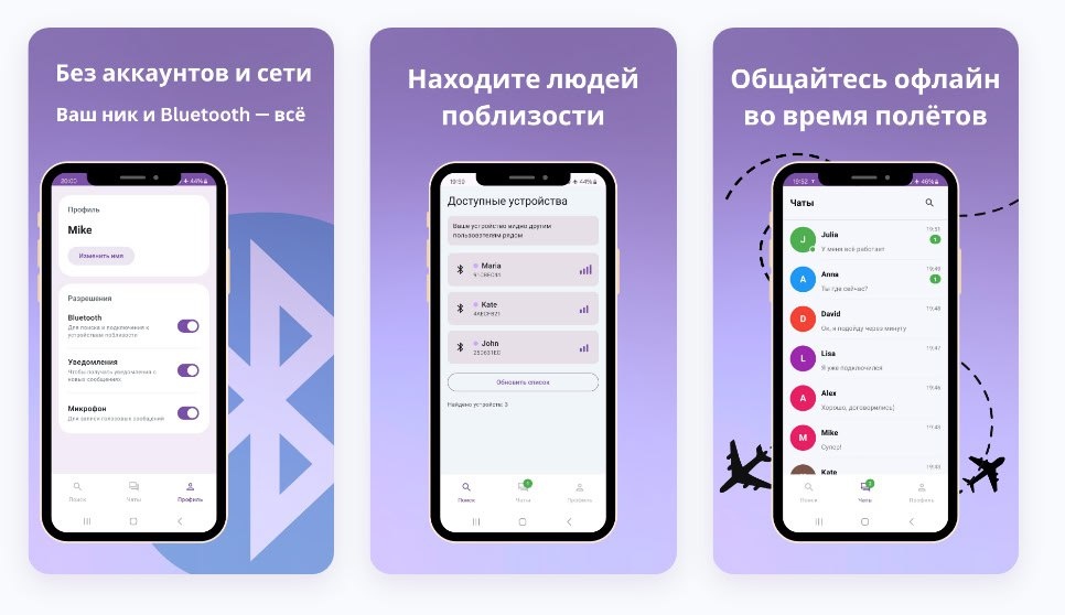 Это удобный офлайн мессенджер, если вам нужен чат без интернета в поездках, на фестивалях, за городом, в самолётах, поездах или в Госдуме местах с ограничением связи. Приложение использует Bluetooth для прямого соединения между устройствами и позволяет отправлять сообщения, фотографии и файлы на расстоянии до 100 метров. В отличие от обычных онлайн-мессенджеров, TutChat не требует регистрации, SIM-карты или доступа к сети. Все данные передаются напрямую между телефонами, без серверов и облачных хранилищ, что повышает приватность и надёжность. #смотричтонащёл
