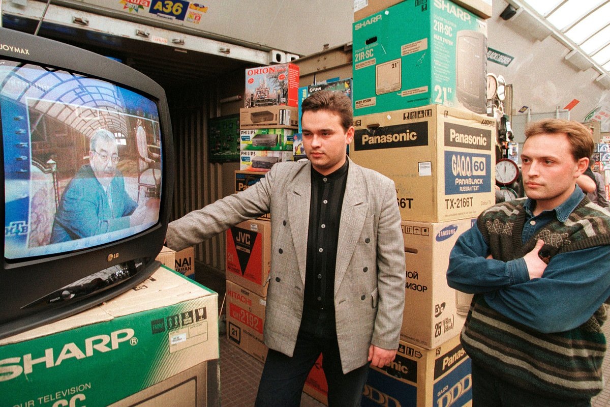 У нас же любят хохотать над соседями и рассказывать о каком-то клоуне с зависимостями, но он не клоун. Так же как не был клоуном Ельцин. Впрочем, ладно, мы лучше посмотрим, как выдавали ваучеры в 1992 году. Сбербанк был тогда вот таким.