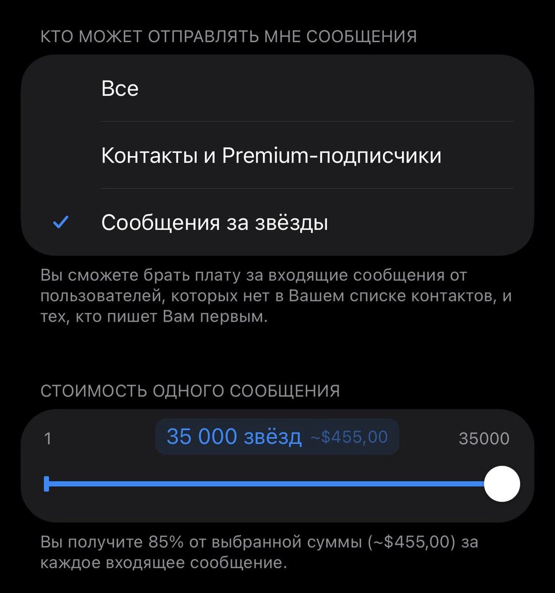 В Telegram максимальная цена одного сообщения выросла до $535. Лимит увеличен с 10 тыс. звезд до 35 тыс.. Сообщение Дурову по-прежнему стоит 10 тыс. звезд. https://dzen.ru/id/5c0e38ff46ef5c00aaa80527