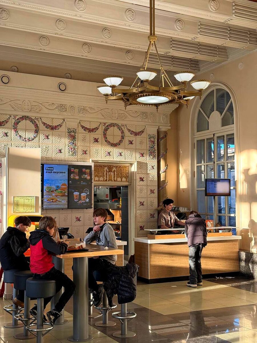 🍔 🗓 Пн-Вс 05:00-01:00 📍 Привокзальная площадь, 1, Пушкин Совсем недавно в здании старого вокзала Царское Село заработал ресторан «Вкусно — и точка». Внутри все оформлено старинной плиткой и аутентичными деталями. Теперь перед прогулкой по Пушкину можно зайти сюда, чтобы быстро перекусить или взять еду с собой и отправиться гулять дальше. #локация Куда пойти в Питере с детьми Я в ТГ | Я в VK | Я в MAX