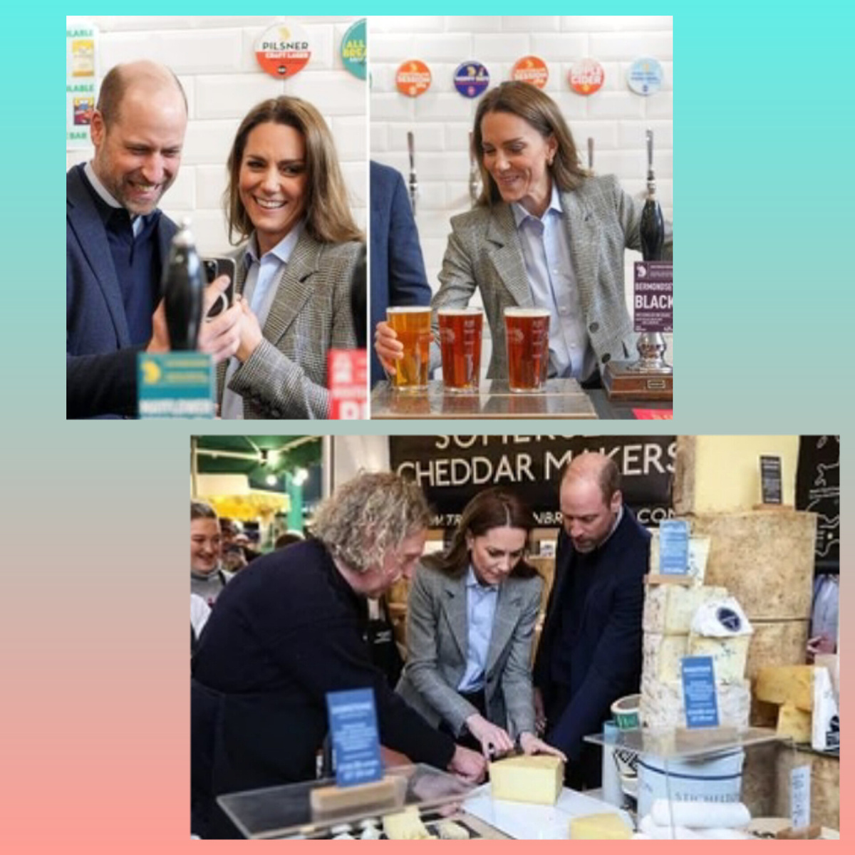 Уильям и Кейт провели время с несколькими торговцами Боро в поддержку частного бизнеса. Они пообщались с братьями Третоуэн, чья компания по производству сыров отмечена наградами.