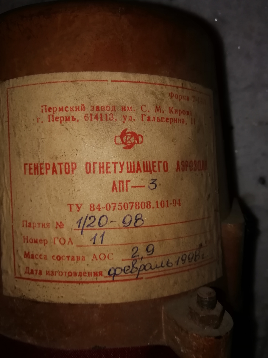 Воспоминание об «артефакте», найденном около года назад. Моим основным направлением в тот период был сбор вторсырья. Особенно я радовался, когда находил цветной металл (медь, алюминий). В этот же период я начал собирать свои первые «артефакты». В один из вечеров решил посетить мусорную площадку, расположенную среди новостроек. Там часто попадался металл (раковины, сантехника, остатки электропроводки и т.д.). И мне повезло. Несколько металлических раковин с кранами, обрезки медных проводов, полотенцесушитель. Довольный, как слон, я уже собирался идти в сторону машины, но решил заглянуть в мусорные контейнеры. В первых двух был стандартный набор: алюминиевые банки, пластиковые бутылки. Все собрал в заранее приготовленные пакеты. А вот в третьем меня ждал сюрприз. Точнее большой черный пакет. Как только я стал его поднимать, понял, что-то тяжелое лежит на самом дне. В тусклом свете уличного фонаря я увидел предмет цилиндрической формы. Тяжелый. Корпус из металла и надпись «генератор огнет