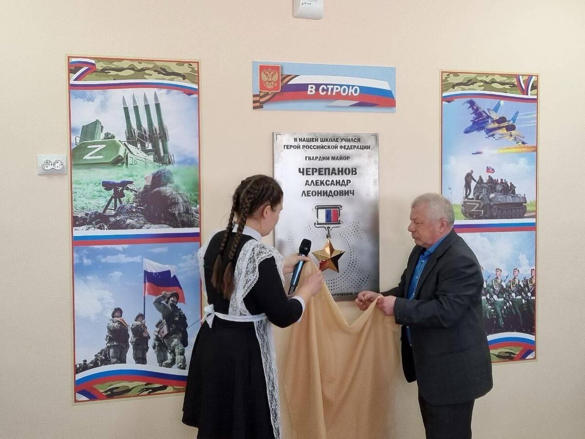 Памятный знак установили на здании Половинской средней школы, где учился Герой. В торжественной церемонии приняли участие жители поселка, представители администрации и РО РВИО. Право открыть памятную доску было предоставлено заслуженному учителю России Ивану Никитину и финалистке конкурса «Лучший кадет Курганской области 2025» Софье Ивановой. 🖥 Александр Черепанов начинал службу с командира парашютно-десантного взвода. В боевой подготовке был примером для взвода, а потом роты и батальона. Награжден орденом Мужества за штурм бандформирований в городе Грозном в 1995 году, орденом «За военные заслуги» в 1999 году при ликвидации банд наемников в Батхлинском районе Дагестана. В апреле 2000 года Президент РФ вручил Гвардии майору Александру Черепанову Золотую Звезду Героя России за мужество, стойкость и героизм, проявленные при ликвидации незаконных бандформирований в Северо-Кавказском регионе. В настоящее время живет в Москве, преподает в одном из высших учебных заведений. #РВИО #новост