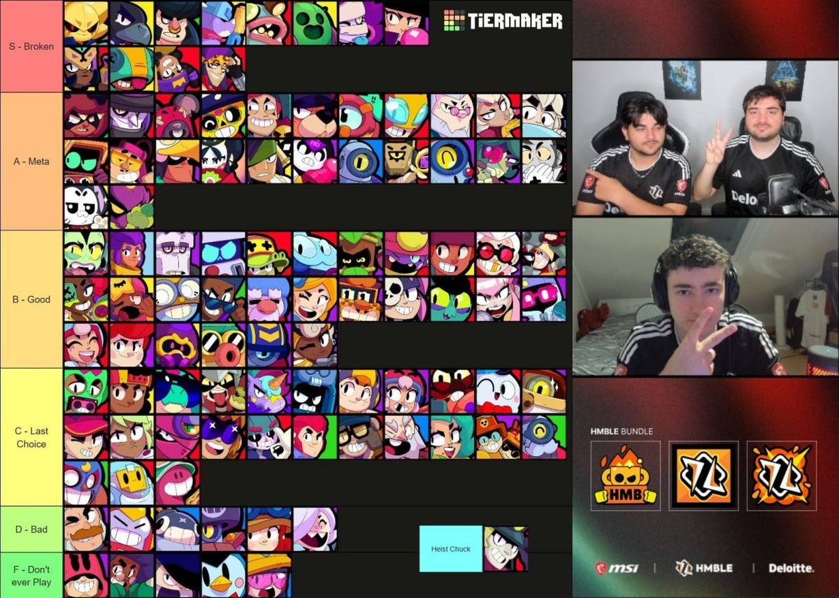 Команда HMBLE составили свой тир-лист нынешней меты. Чак только для Ограбления, Сириус лучший в игре, Наджию же они поместили в S-тир.