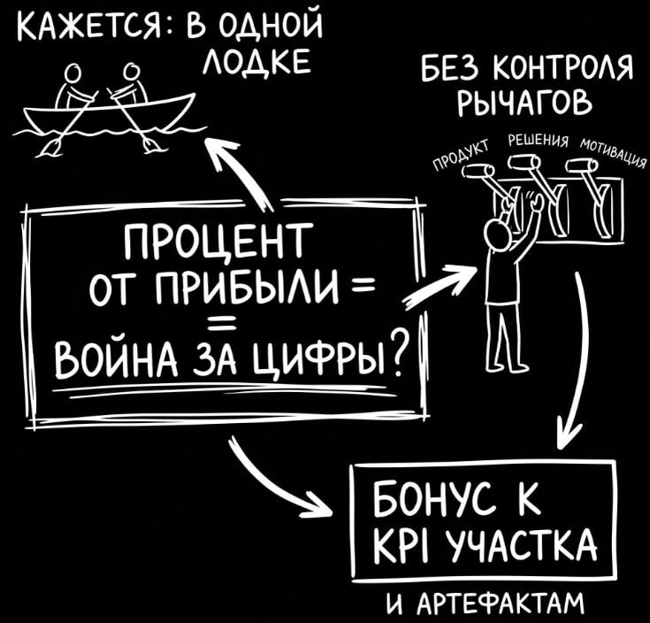 #процент #мотивация #прибыль Отдельно про "процент от прибыли" Это звучит очень честно. "Мы в одной лодке". "Мы заработаем только если ты заработаешь". И на этом крючке люди часто соглашаются, потому что кажется, что рисков меньше. Я сам в свое время пробовал такие модели. Маркетинг. Внедрения. Отдел продаж. Иногда даже полное ведение направления. И почти всегда все заканчивалось напряжением 😩 Причина простая. Чистая прибыль - штука управленческая, а не маркетинговая. Ее можно улучшить не ростом продаж, а переносом затрат. Ее можно "съесть" наймом. Ее можно "убить" решением собственника вложиться в продукт. Ее можно не показать из-за структуры компании и бухгалтерии. А если прибыль спорная, начинается бесконечный спор о цифрах ❓ И есть главный фактор. Внешняя команда не может управлять тем, что влияет на прибыль сильнее всего. Качеством продукта. Скоростью принятия решений. Системой мотивации внутри. Приоритетами собственника. Получается конфликт по определению. Они зависят о