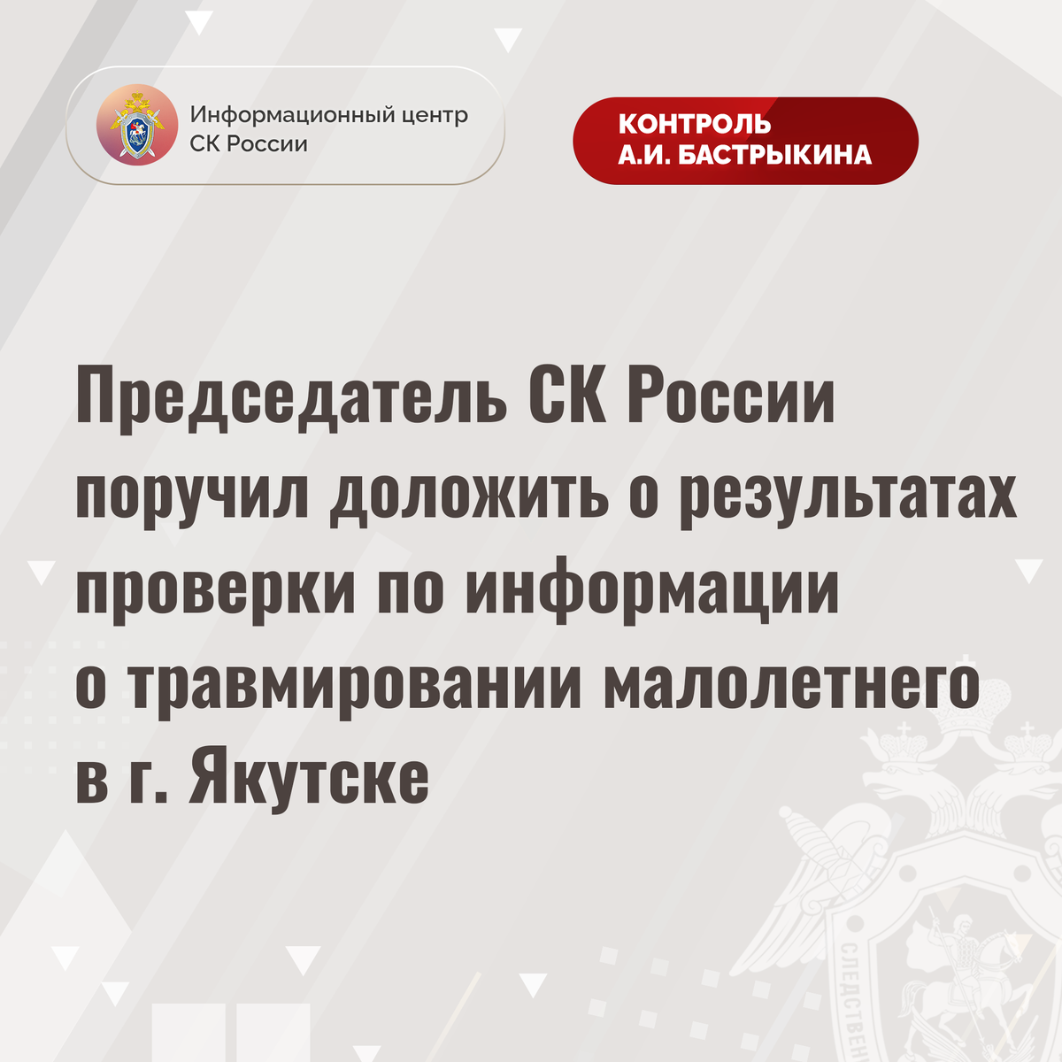 Председатель СК России поручил доложить о результатах проверки по информации о травмировании малолетнего в г. Якутске