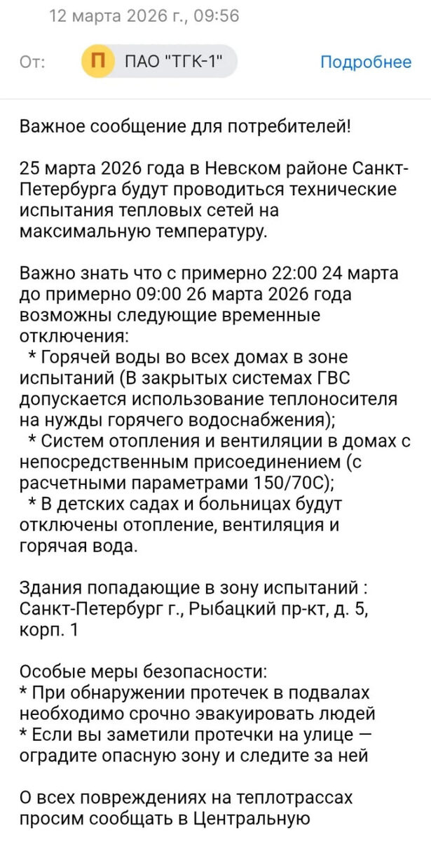 😝 Ну вот, жители дома на Рыбацком проспекте, 5, готовьтесь к самому неожиданному! С 24 по 26 марта пройдут испытания теплосетей — и