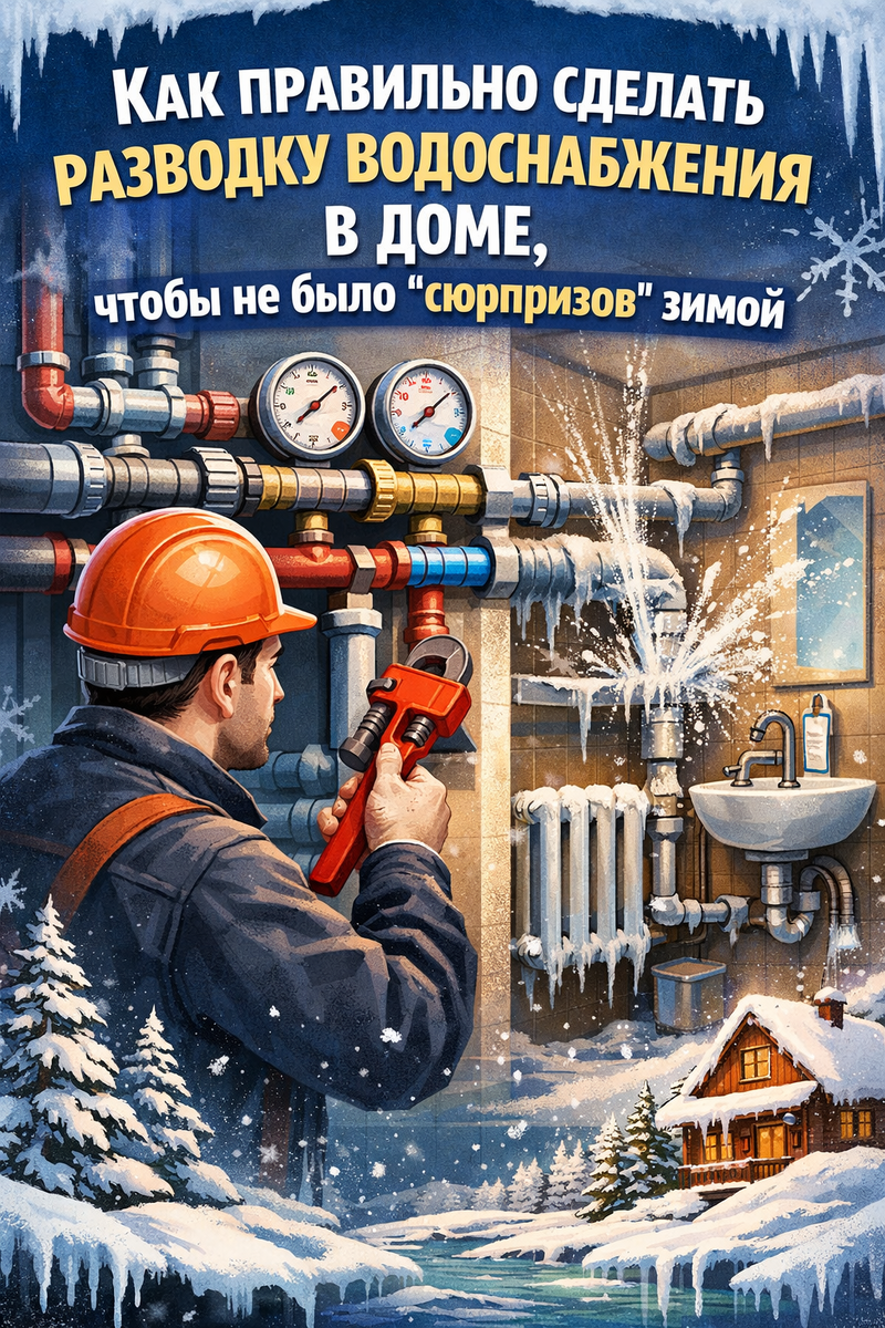 Физика давления, история инженерных решений и почему современные «экономичные» схемы часто замерзают или рвутся. Многие при строительстве дома делают разводку водоснабжения «как в проекте» или «как дешевле» — и потом всю зиму бегают с феном и паяльником. То труба в стене замёрзла, то давление скачет, то бойлер не греет. В старых домах 50–70-х годов водопровод работал десятилетиями без таких проблем. Давайте разберёмся, почему. 1. Главная ошибка современных схем