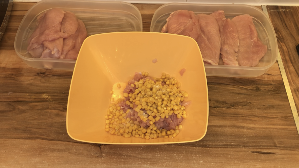 Себестоимость всего блюда: 200 (курица) + 120 (кукуруза) + 10 (яйцо) = 330 рублей за 8 сочных котлет! Это по 41 рублю за котлетку. Согласитесь, дешевле, чем покупать сосиски непонятного состава.