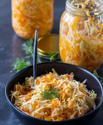 Квашеная капуста - это сладкое и слегка кисловатое блюдо, состоящее из нарезанной капусты, моркови, болгарского перца и лука, замаринованных в рассоле на основе масла и уксуса. За 12 часов в холодильнике рассол пропитывает овощи, придавая им восхитительный вкус. Это как салат, только маринованный. Вот рецепт квашеной капусты. Продукты необходимыедля приготовления: