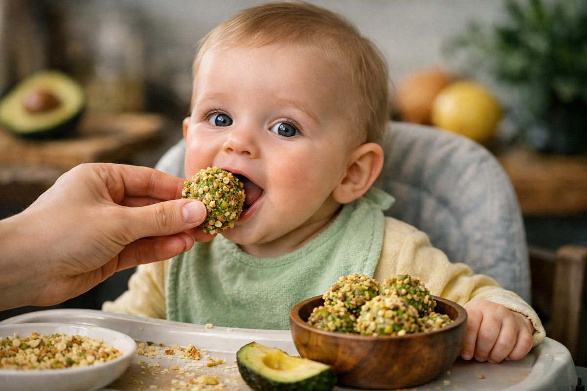 Здесь я буду максимально резок: никаких дроблёных орехов, «крупной крошки» или гранолы в детской тарелке быть не может. Любая частица, которую ребёнок не может раздавить деснами, - это потенциальный агент риска. Для панировки подходит только ореховая мука, стертая в пыль, или пудра, которая полностью сливается с поверхностью авокадо.