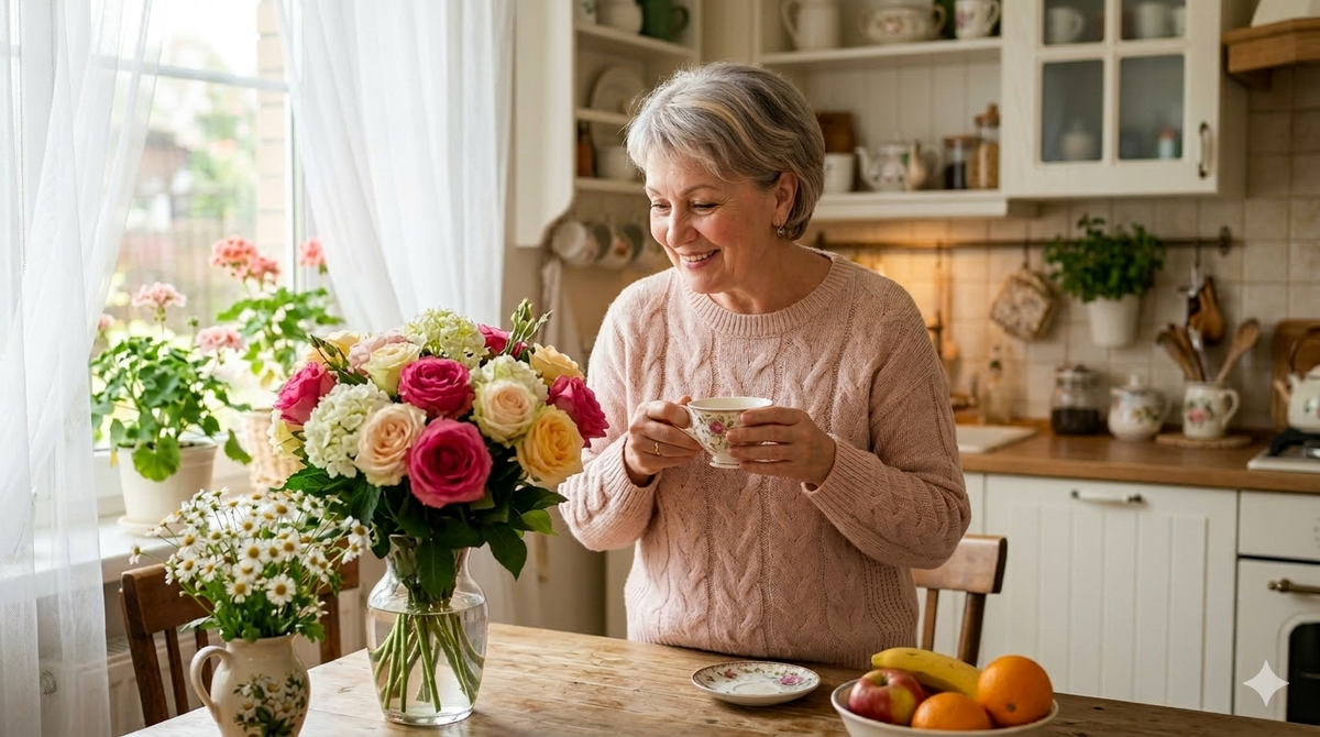 Не знаю, как это случилось. Мой сосед — тот самый, что живёт этажом ниже и вечно возится с розами на балконе, вдруг принес букет и сказал: “Просто захотел сделать вам приятно.” Я засмеялась, а потом весь вечер крутила эти слова в голове, как глупая девчонка. Подруга отреагировала просто: “Порадуйся! В твоём возрасте такие комплименты — редкость.”