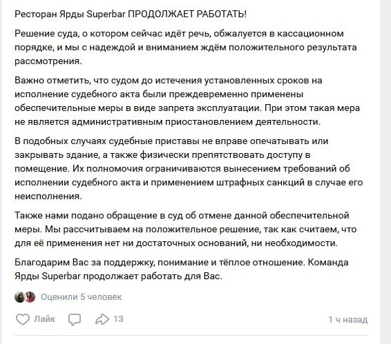 Ресторан «Superbar» на Енисеевской улице закрыт по решению суда
