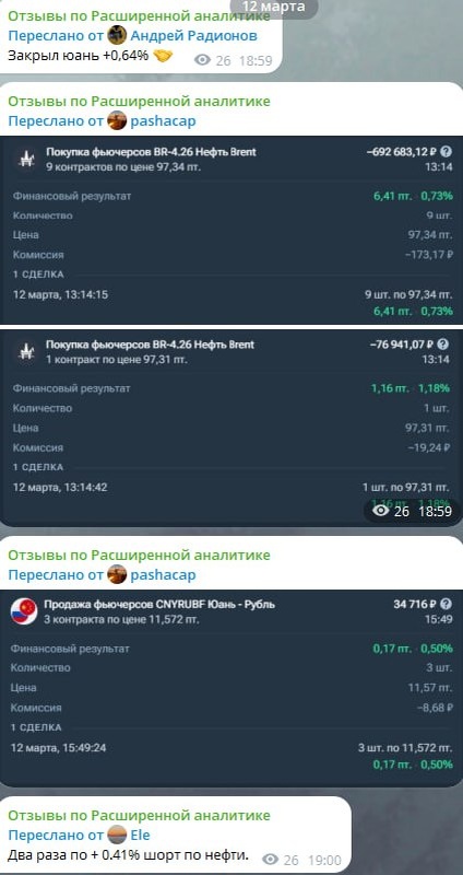 🙏 Отзывы по Расширенной аналитике - это отзывы реальных людей! Последние отзывы там по сегодняшним сделкам в нефти, какао, в газе днем и