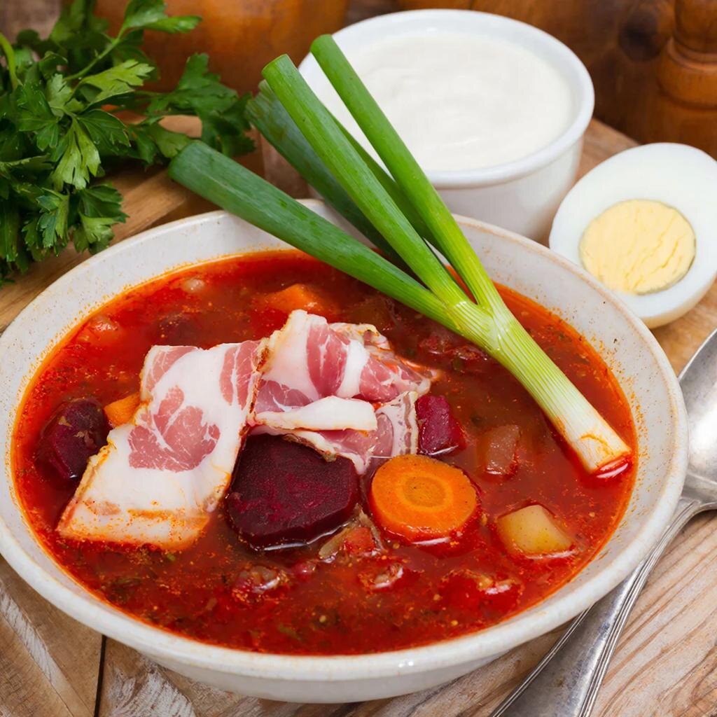 Всем привет! Пришла пора поделиться с вами самым сокровенным, своими рецептами. Первое чем я с вами поделюсь - это то, чем гордятся многие хозяйки в своих семьях - это рецептом настоящего украинского борща. Украинский борщ ярко воплощает особенности национальной кухни: это насыщенный, душистый, красочный и густоватый суп, обладающий потрясающим вкусом. К тому же он весьма полезен благодаря большому количеству корнеплодов и овощных ингредиентов, дополненных свежей зеленью и чесноком перед подачей. Этот суп станет настоящим наслаждением как для организма, так и для сердца. Некоторые опасаются готовить украинский борщ из-за длительного процесса готовки и множества нюансов, требующих внимания. Но спешим вас уверить: предложенная нами версия проста в приготовлении, и справиться с ней сможет каждый, кто только начинает осваивать искусство кулинарии. 800 граммов говядины с мозговой костью из задней ноги или 1 килограмм грудинки на кости. Так же можно использовать свинину, не очень жирную част