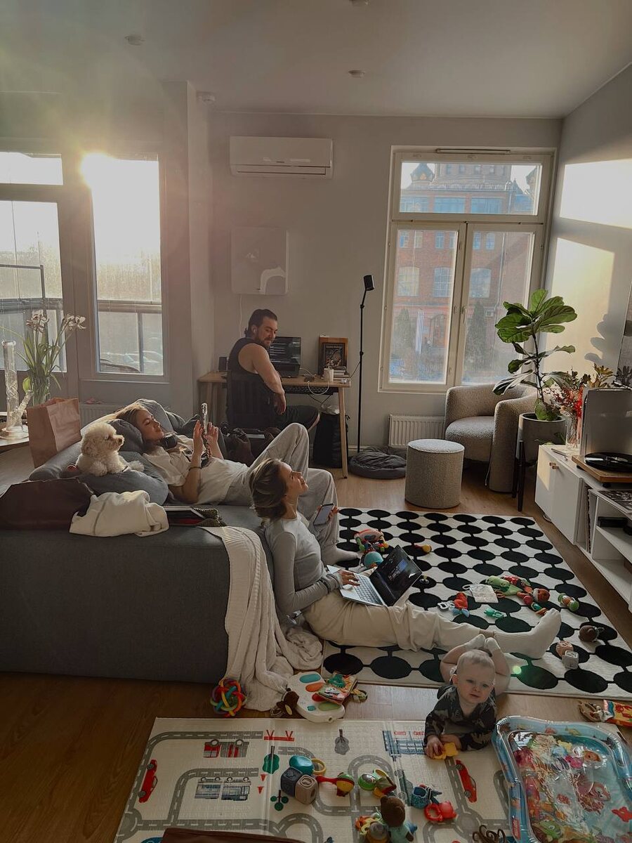 возвращаюсь домой, а здесь слияние детского сада, коворкинга, дружеских посиделок и питомника! ♥️