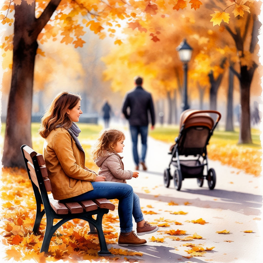 Вика с дочкой гуляла в парке. Осень, листопад, солнечно. Дочка бегала по дорожкам, собирала букеты из листьев, смеялась. Вика сидела на скамейке и пила кофе из термоса.