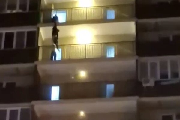 Юноша прыгал по балконам дома на уровне десятого этажа в Краснодаре и попал на видео
