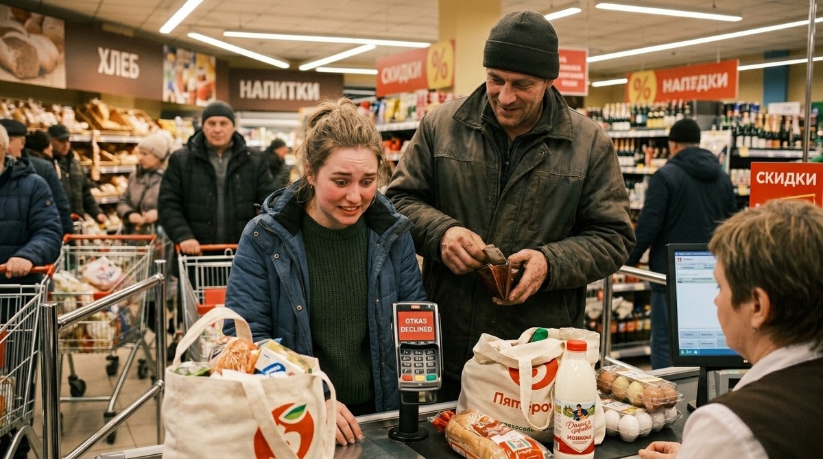 Кассирша уже пробила всё. Лента ползла, пакет наполнялся, и я смотрела на экран терминала так, будто могла заставить цифры уменьшиться.