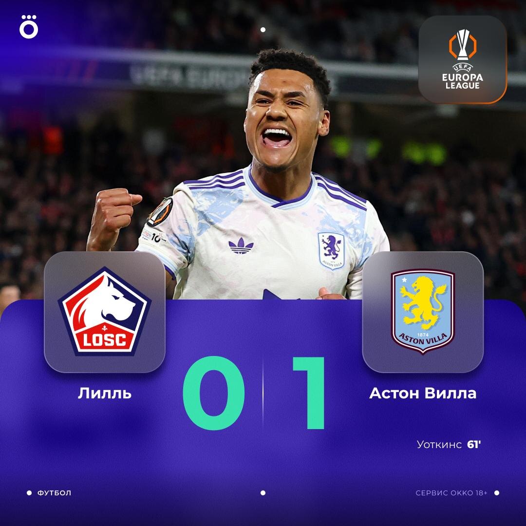Первая победа англичан в 1/8 еврокубков. «Астон Вилла» уезжает из Франции с минимальным преимуществом ✅