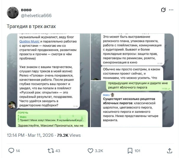 Опять! Твиттерский пользователь обманул ИИ-бота, подсунув ему рецепт яблочного пирога.