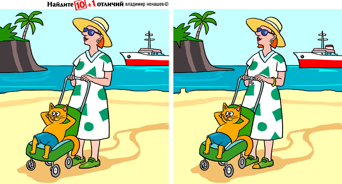 10 отличий. Тест на внимание не очень сложный, но настроения прибавит. Солнечный день.