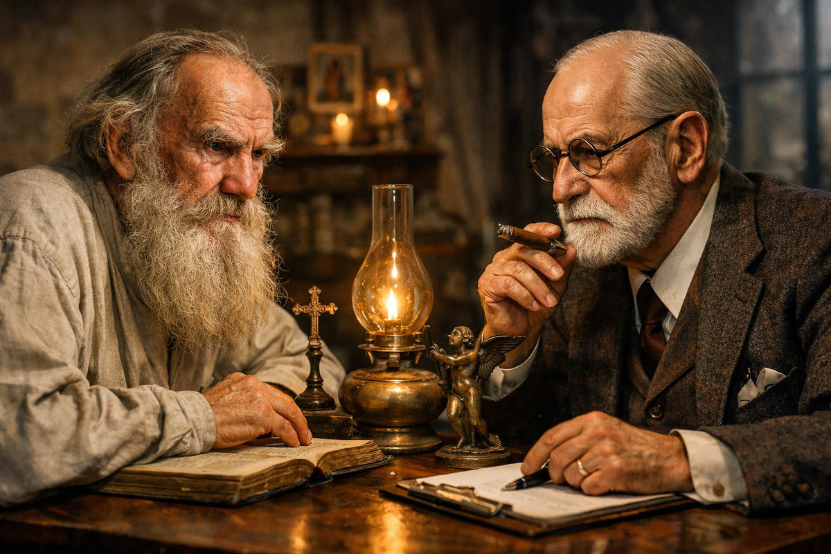 Если кто и подготовил почву для принятия психоанализа, так это старик Толстой с его маниакальным желанием докопаться до самой сути человеческой гадости. Его философия - это вечный поиск чистоты в мире, который по определению нечист. Он препарировал чувства своих героев с такой жестокостью, которой позавидовал бы любой дипломированный аналитик.