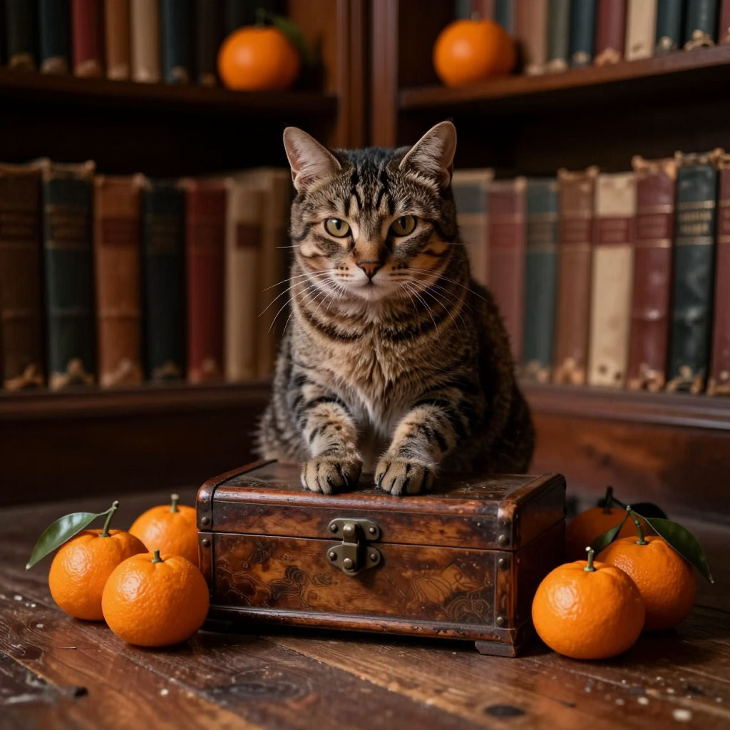 Вечером, когда магазин закрылся и последний посетитель ушёл, Шрифт остался наедине со шкатулкой. Семён Семёныч, зная кошачьи повадки, оставил её на прилавке — пусть, мол, старый философ изучит.