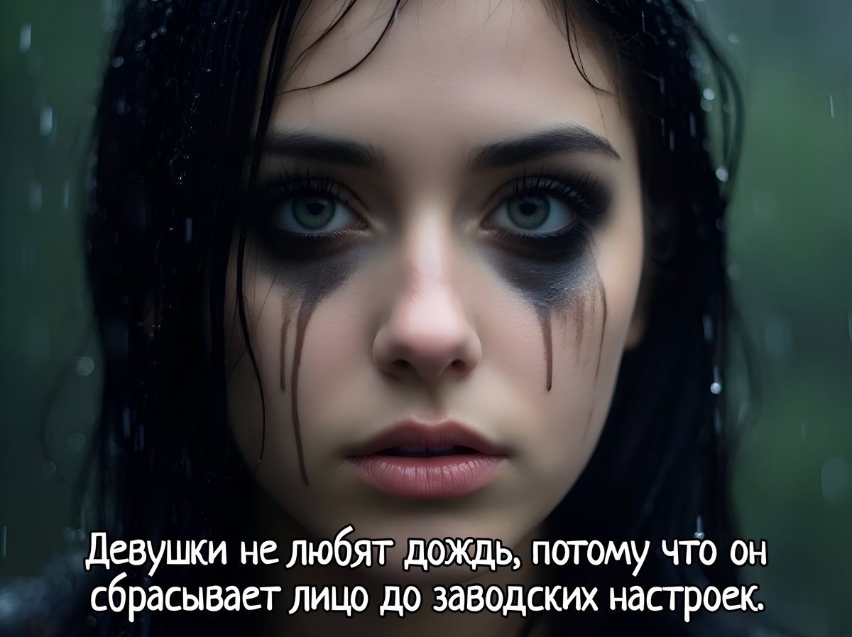 Черные ручьи текут по щекам. Вы выглядите так, будто у вас в глазах нефтяное месторождение прорвало. Слезы смешиваются с тушью, и теперь вы не женщина, а готическая статуя с плачущего кладбища.
